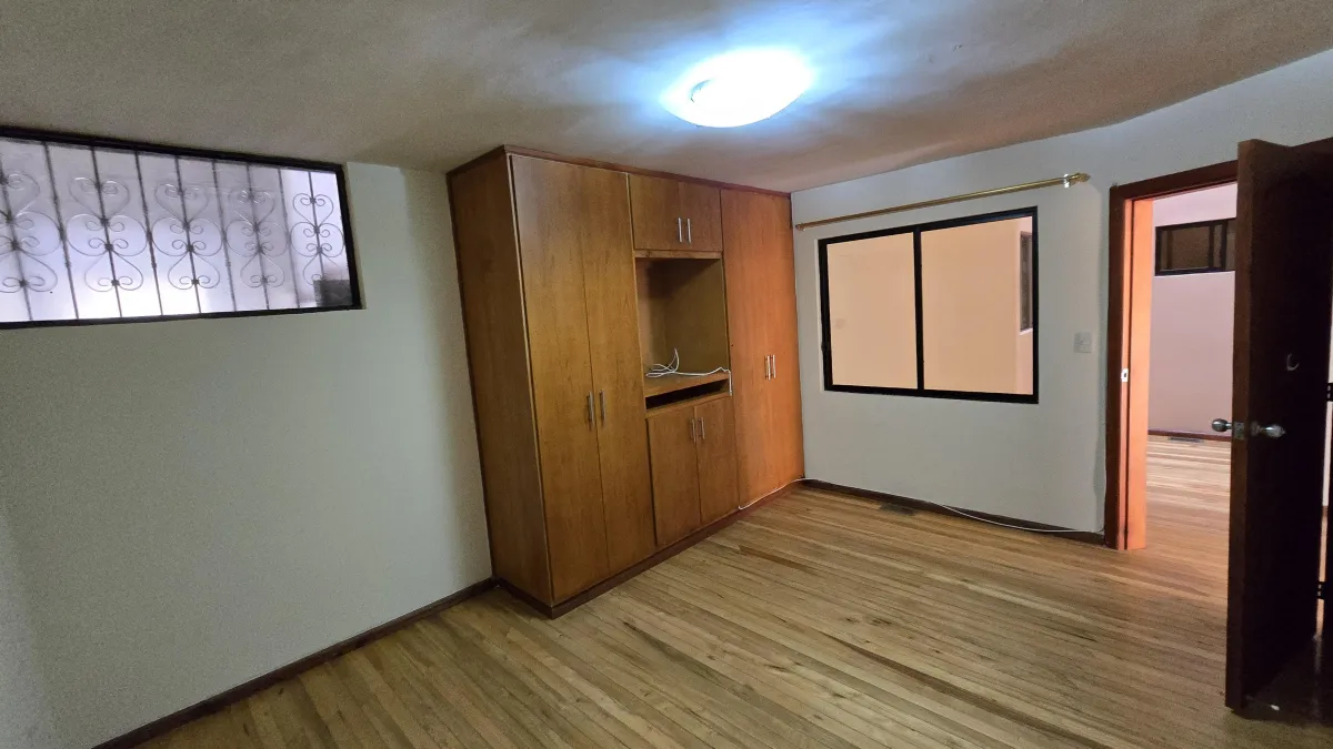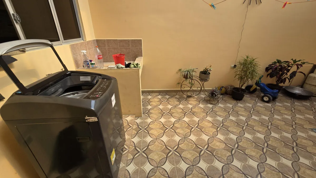 Planta Baja: Sala y comedor en un único ambiente, cocina con muebles altos y bajos que incluye extractor, patio posterior, lavandería, amplio dormitorio sin closet, 1 baño completo compartido, 4 dormitorios, incluye calefón